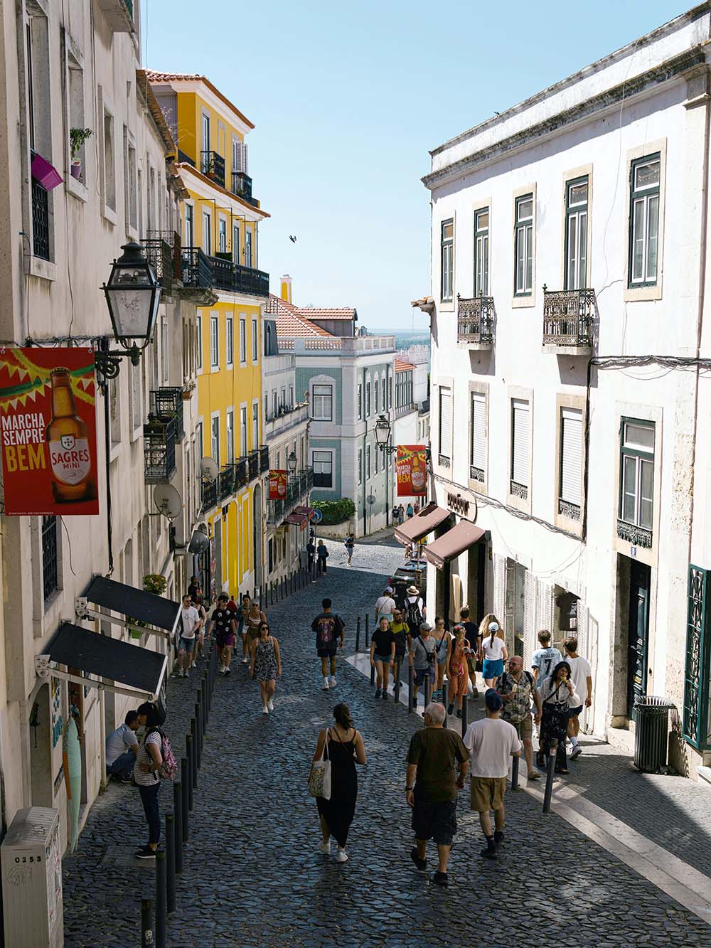 Lisboa er bygget på syv åser, og det merkes hver gang du går ut hotelldøren. Alt går enten oppover eller nedover, noe som kan være slitsomt når det er varmt. Men lokalbefolkningen har løst det med trikker og heiser som tar deg opp og ned. Og fra utsiktspunktene, som det finnes mange av, har du panoramautsikt over hele byen.