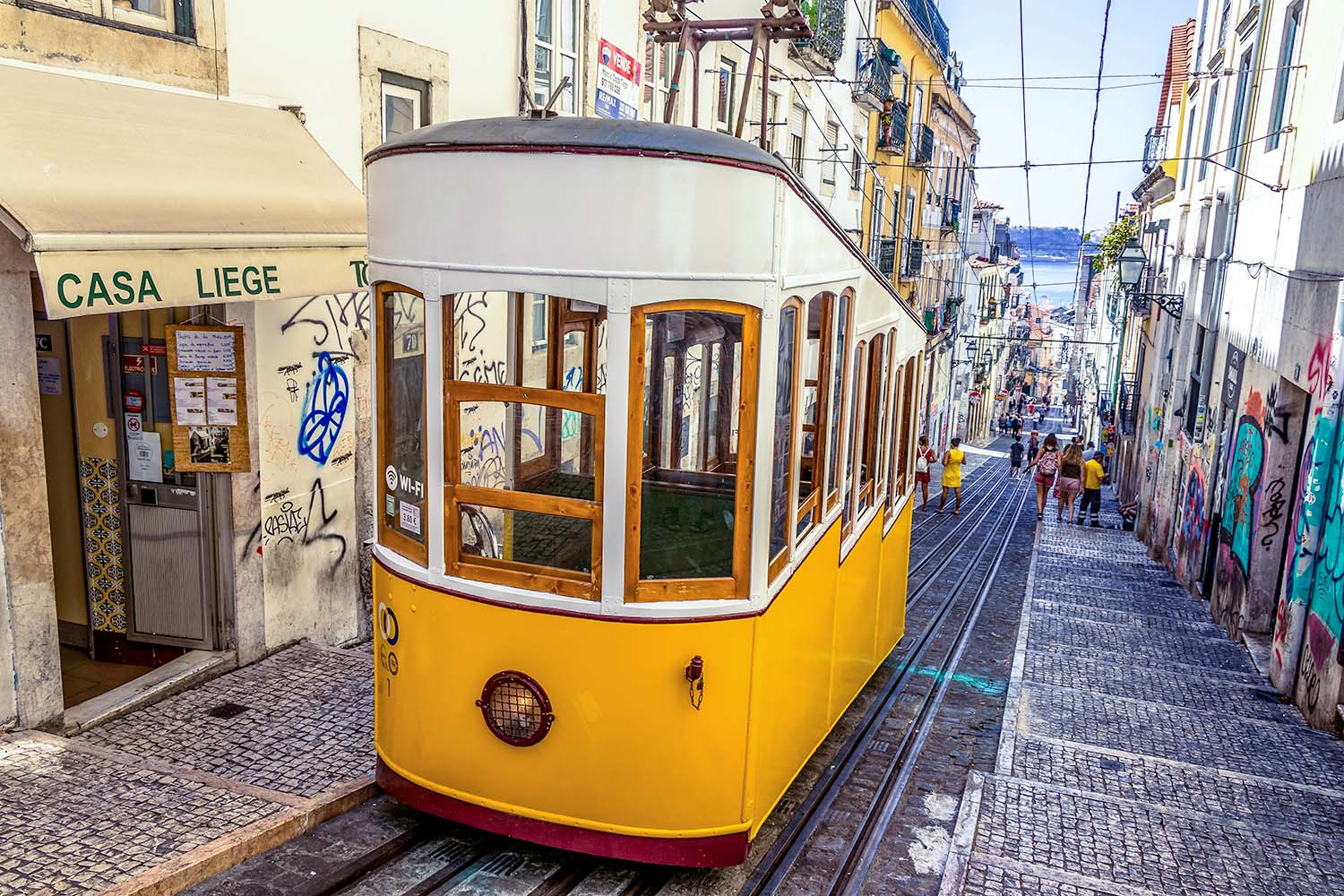 Gatene er tidvis så smale at trikken passerer husfasadene med bare noen centimeter å gå på. Å sitte på de harde trebenkene mens føreren manøvrerer den gamle trikken opp bratte bakker er en opplevelse du sent vil glemme.
